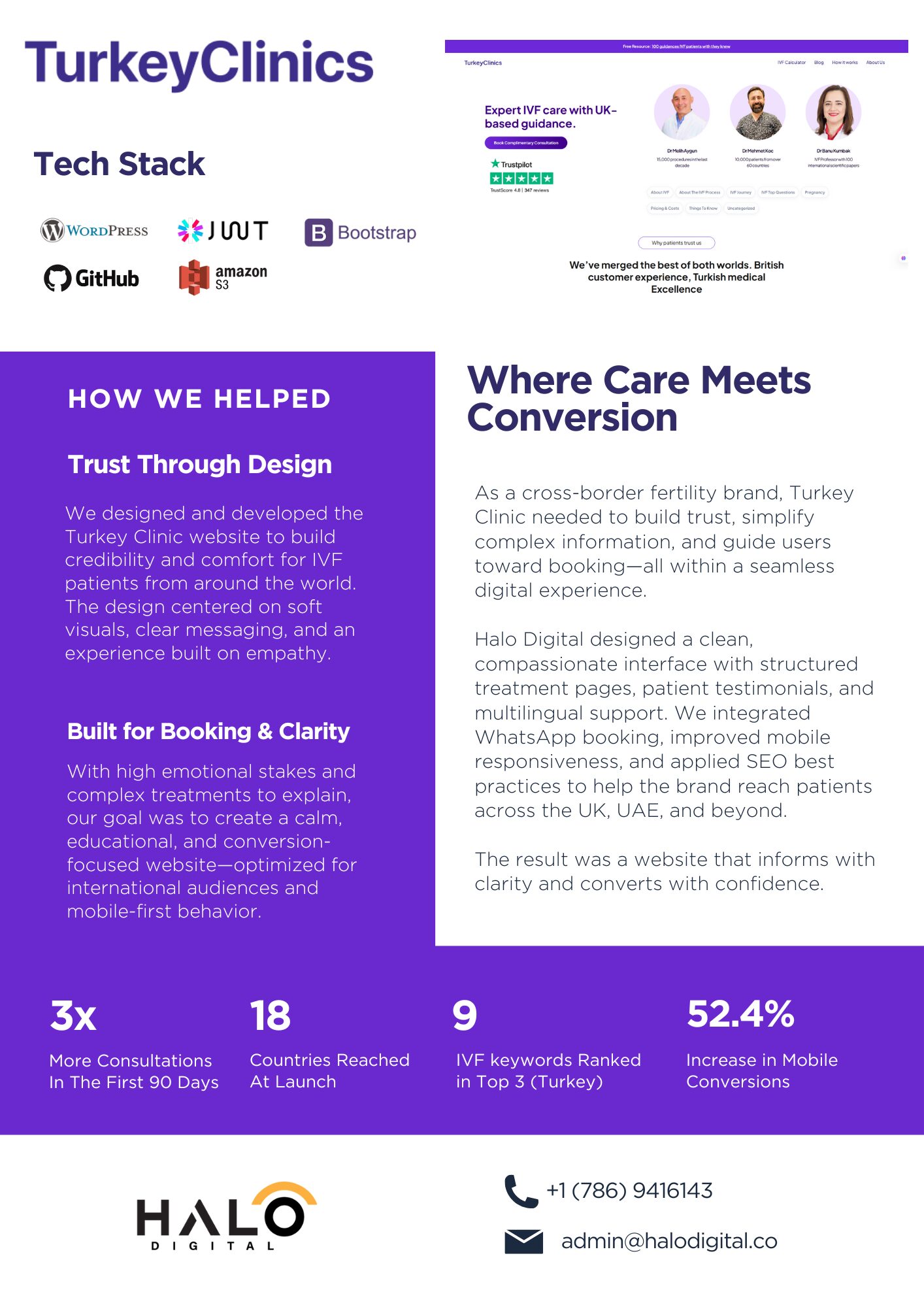 Turkey Clinic is a cross-border IVF medical service connecting patients from the UK, USA, Canada, and UAE with expert fertility care in Turkey. The website was designed to establish trust, communicate sensitive medical information with empathy, and deliver a seamless digital experience for prospective IVF patients.