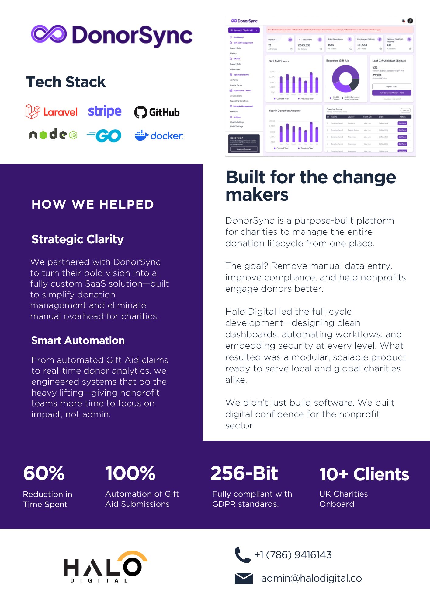 DonorSync is a full-featured SaaS solution designed to simplify donation management for charities. Built with a strong focus on security, compliance, and automation, DonorSync enables charities to process donations, automate Gift Aid claims, and manage donor relationships — all through a single, easy-to-use platform.